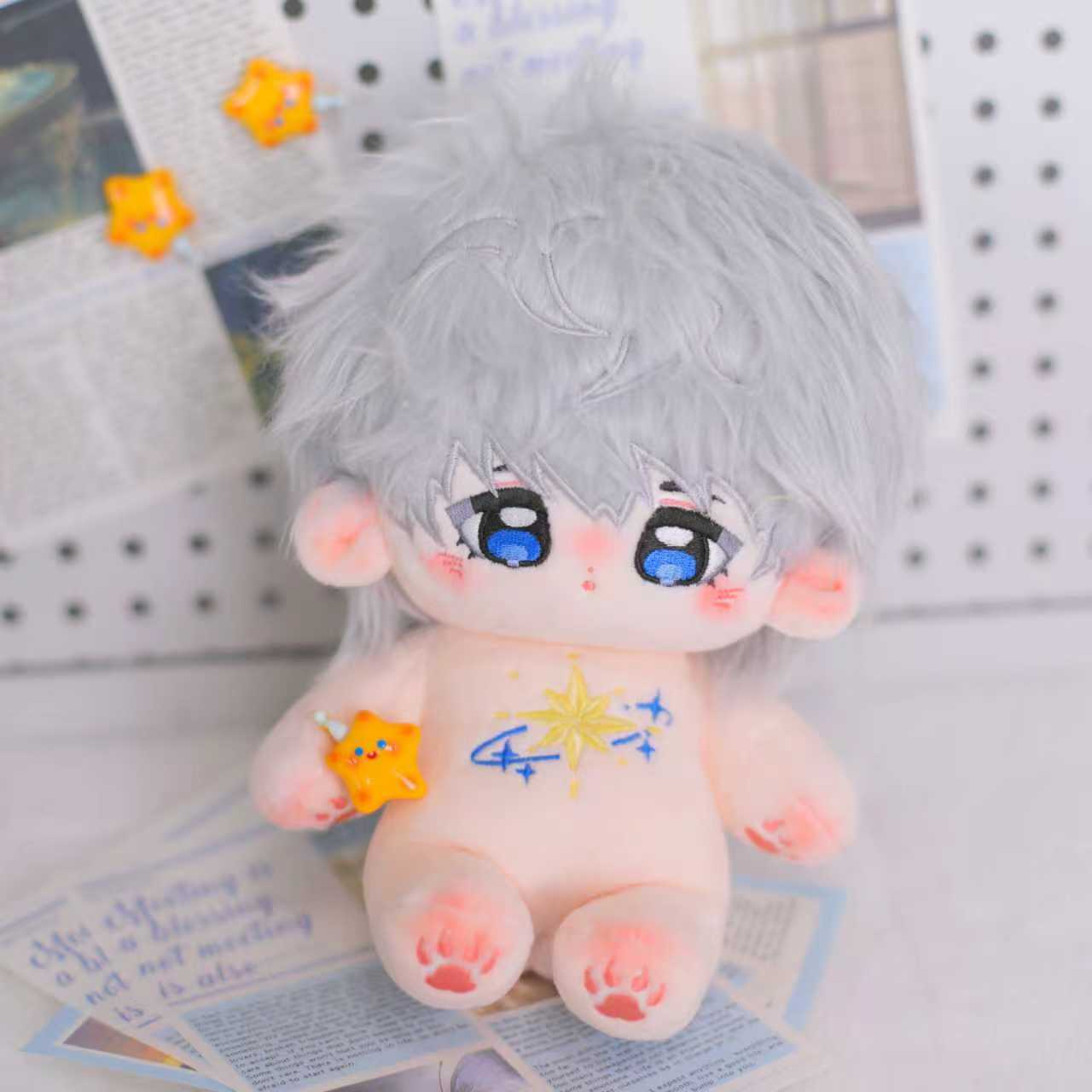 綿人形 無属性 ぬいぐるみ 20cm 着せ替えぬいぐるみ 着せ替え人形 白髪と青い瞳コットンドール 愛と深宇宙 - シェン・シンフイ