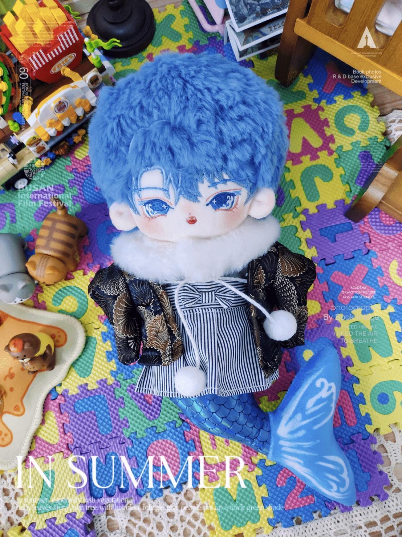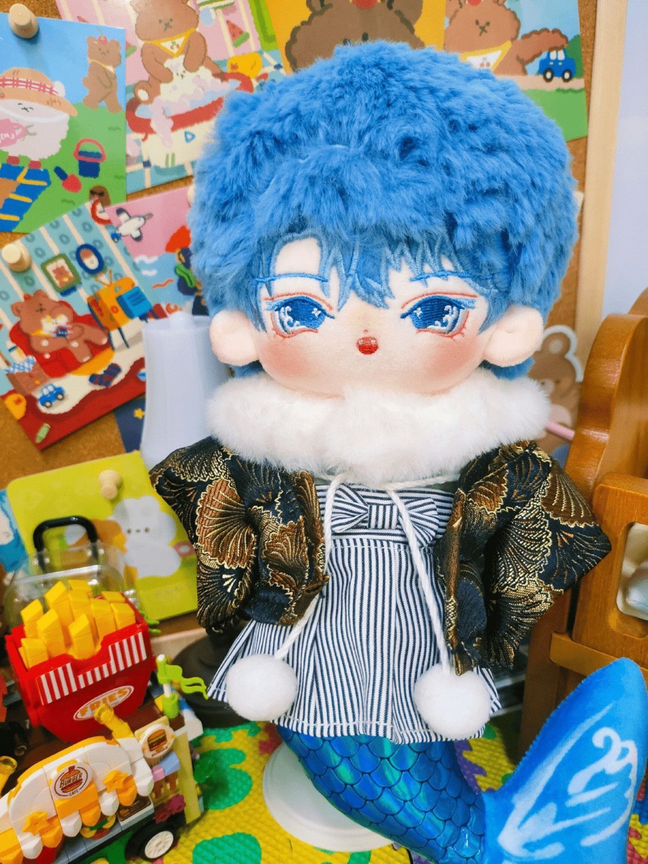 20cm 無属性 ぬいぐるみ 着せ替えぬいぐるみ 人魚 ラン・チーチー 青い髪青い目男の子