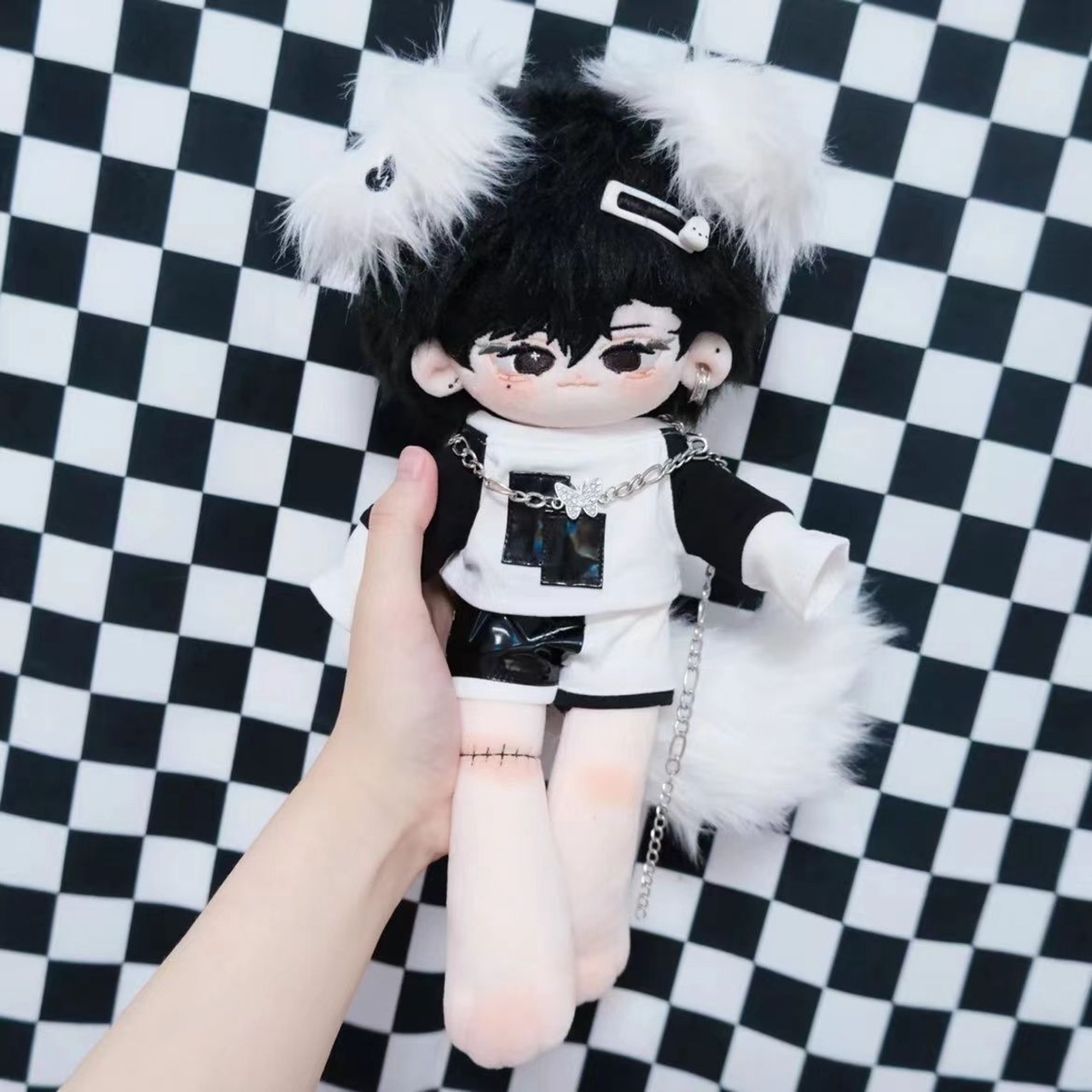 濃霧 長い脚 38cm 無属性 ぬいぐるみ 着せ替えぬいぐるみ 獣耳付け男の子 黒髪黒い瞳