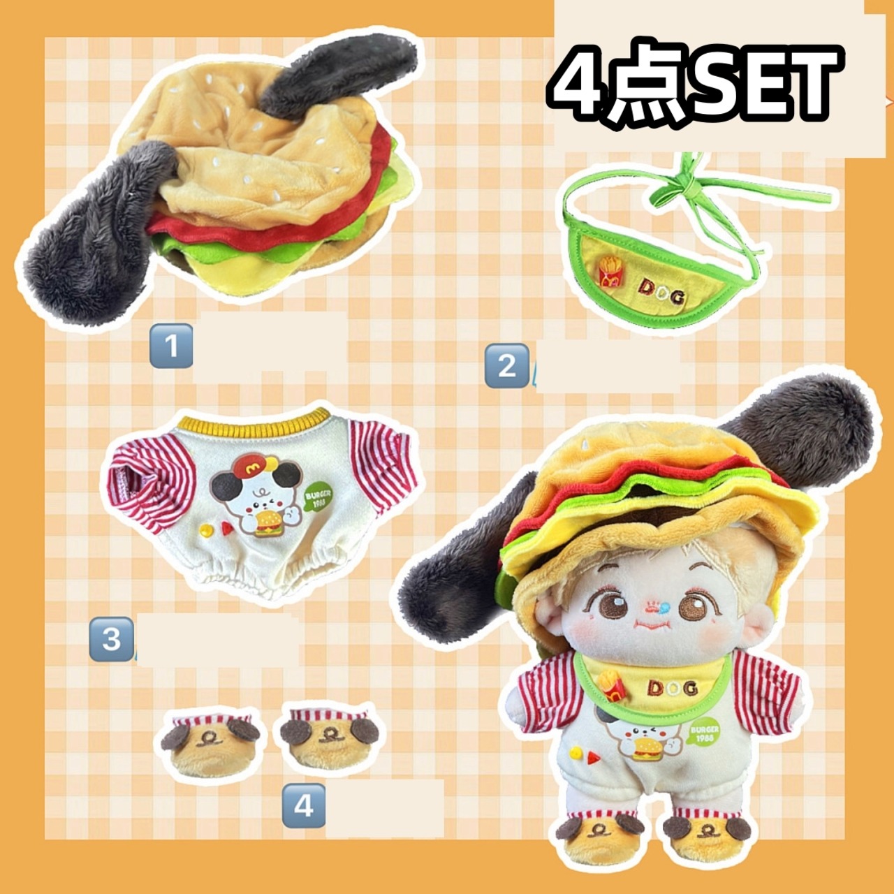 4点セットミニ洋服 20cm 着せ替えぬいぐる服 バーガードッグセットぬいぐるみコスチューム
