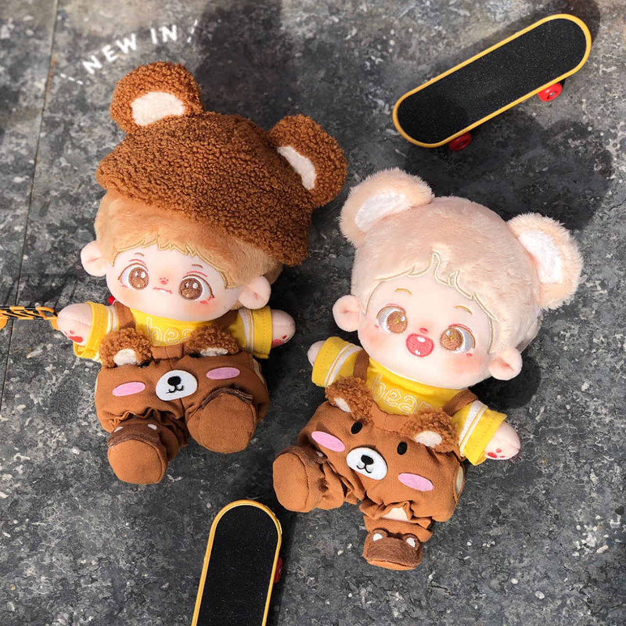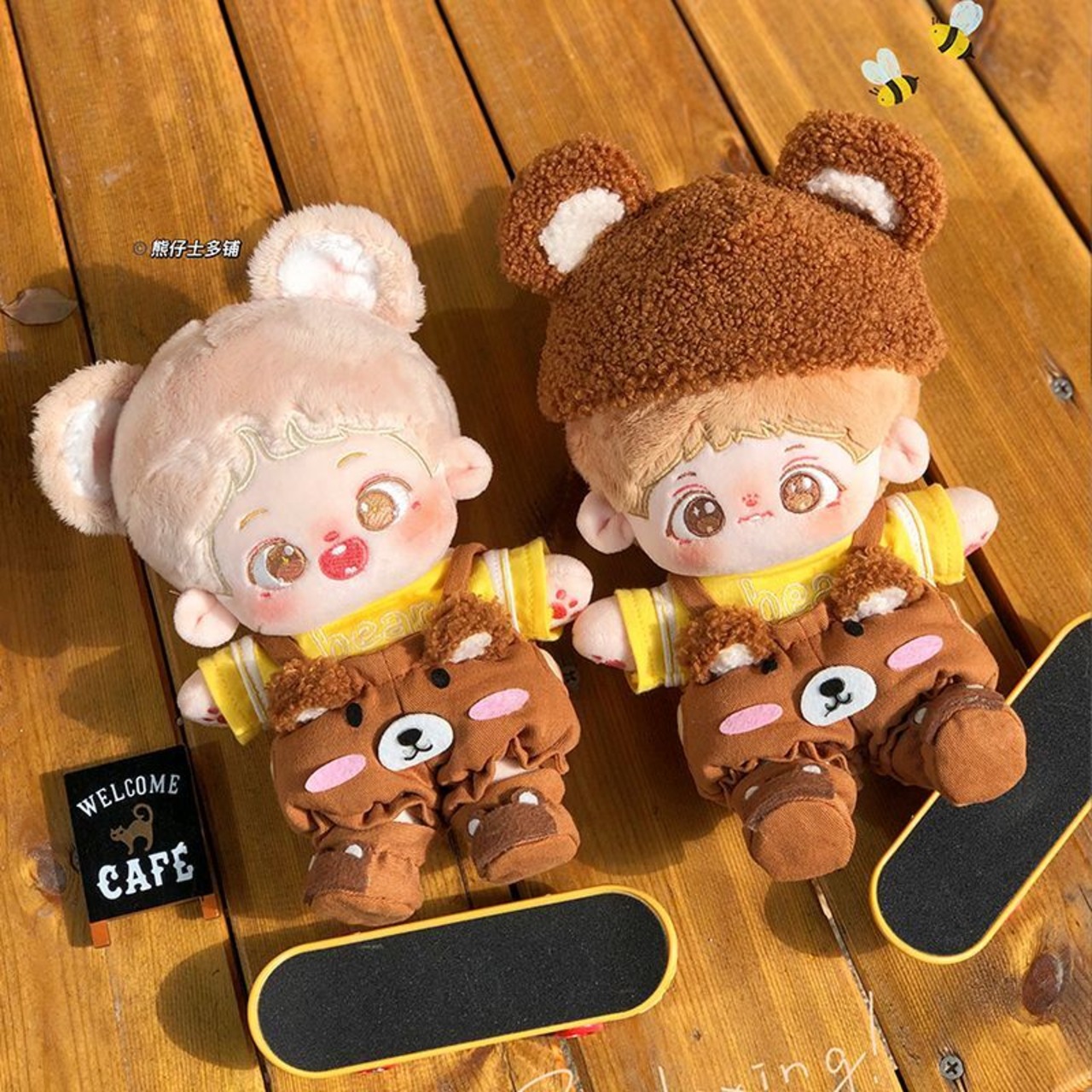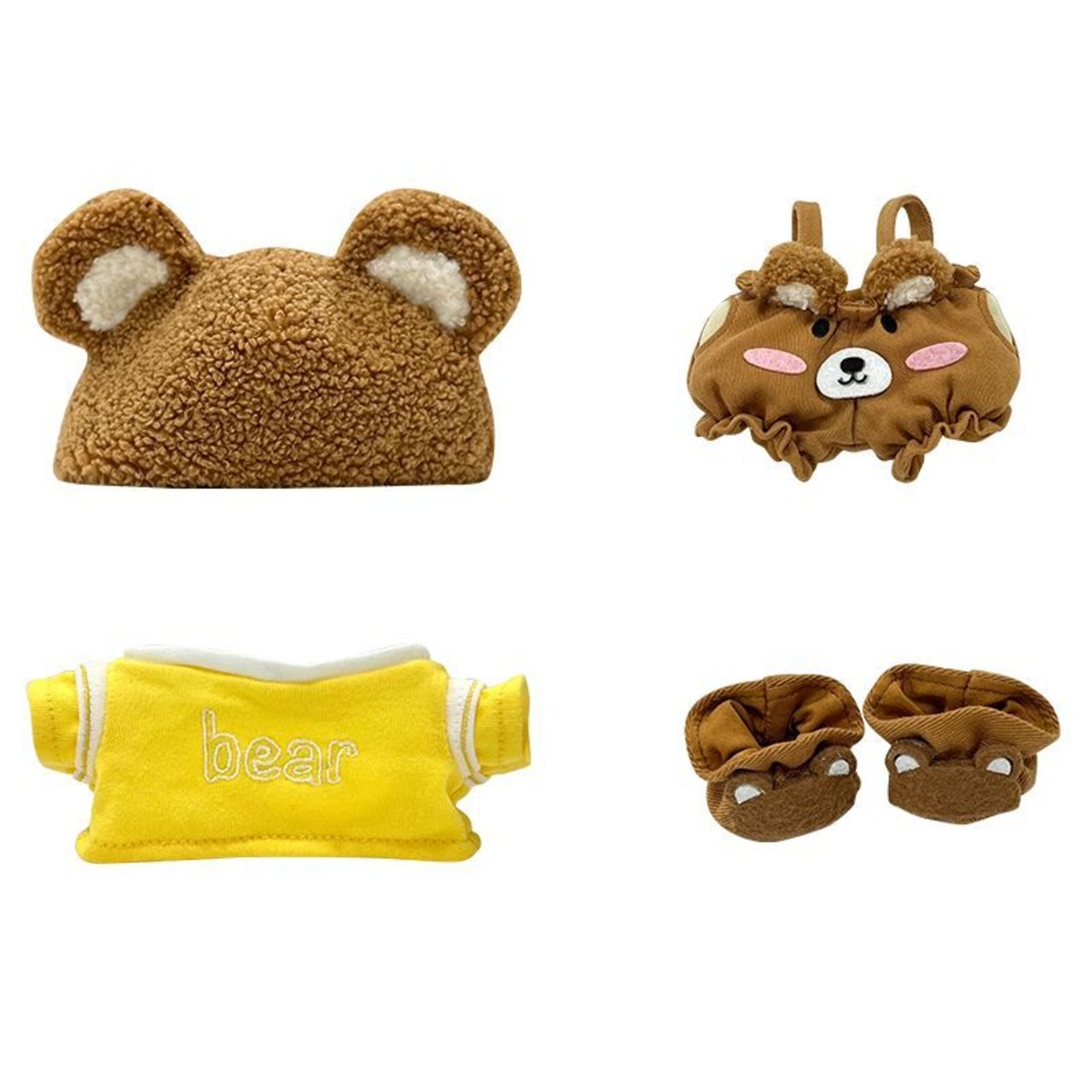 4点セット ミニ洋服 20cm 着せ替えぬいぐる服 クマ オーバーオール 帽子 Tシャツ 靴