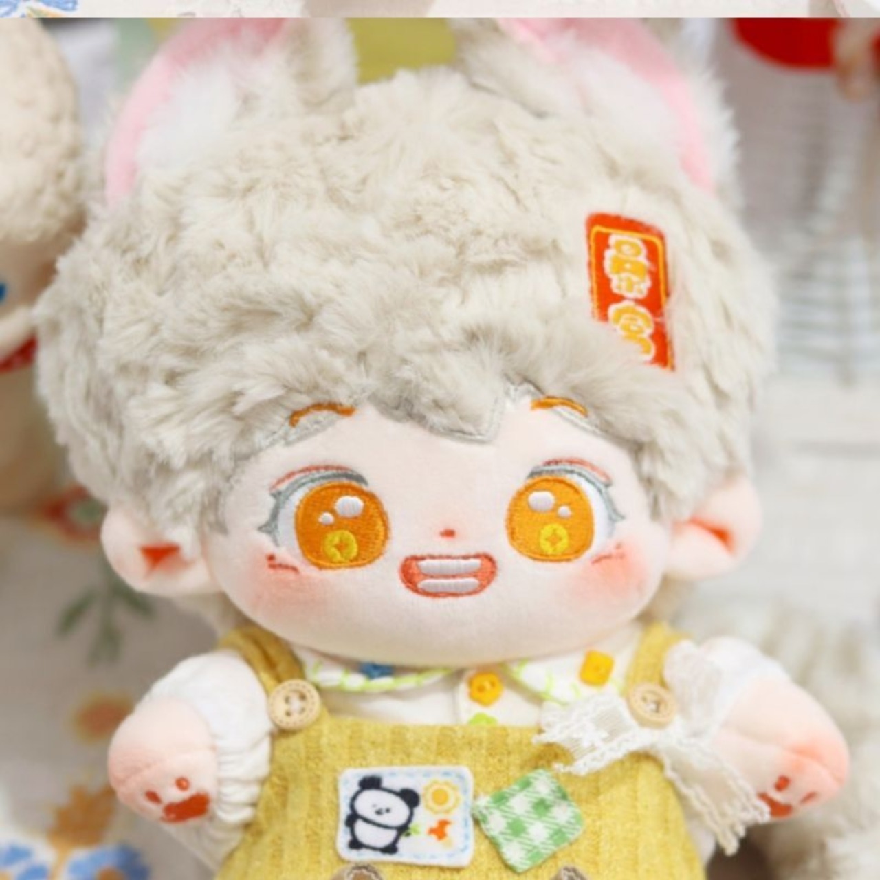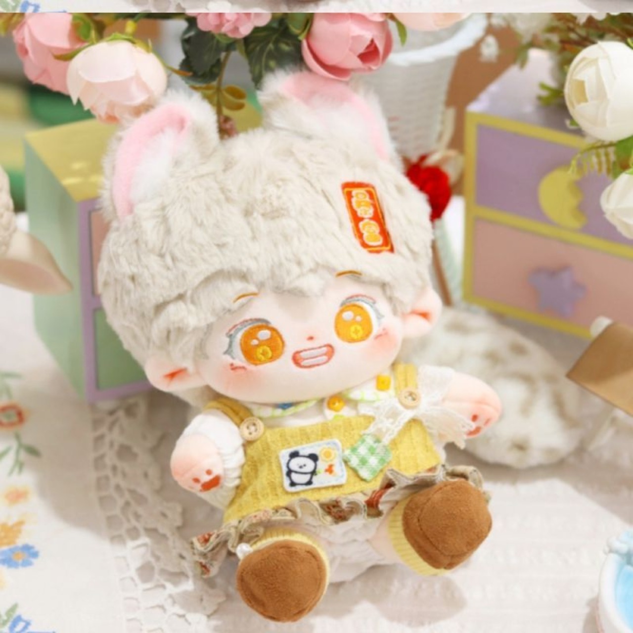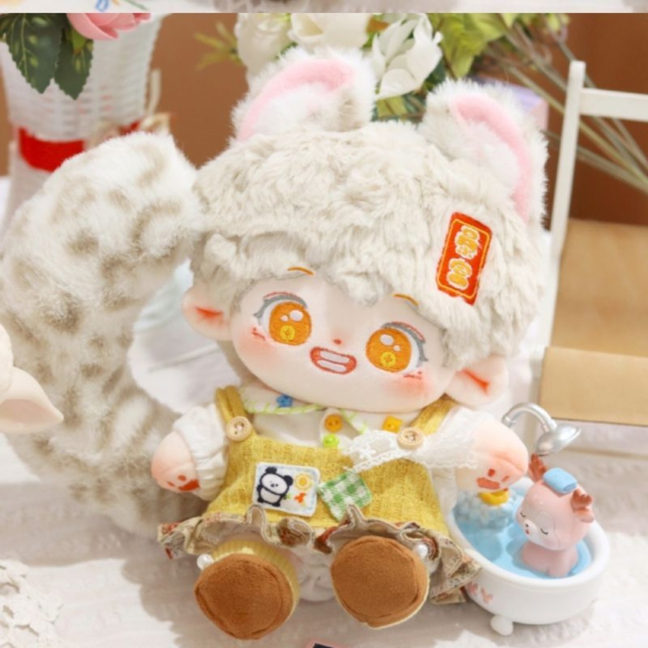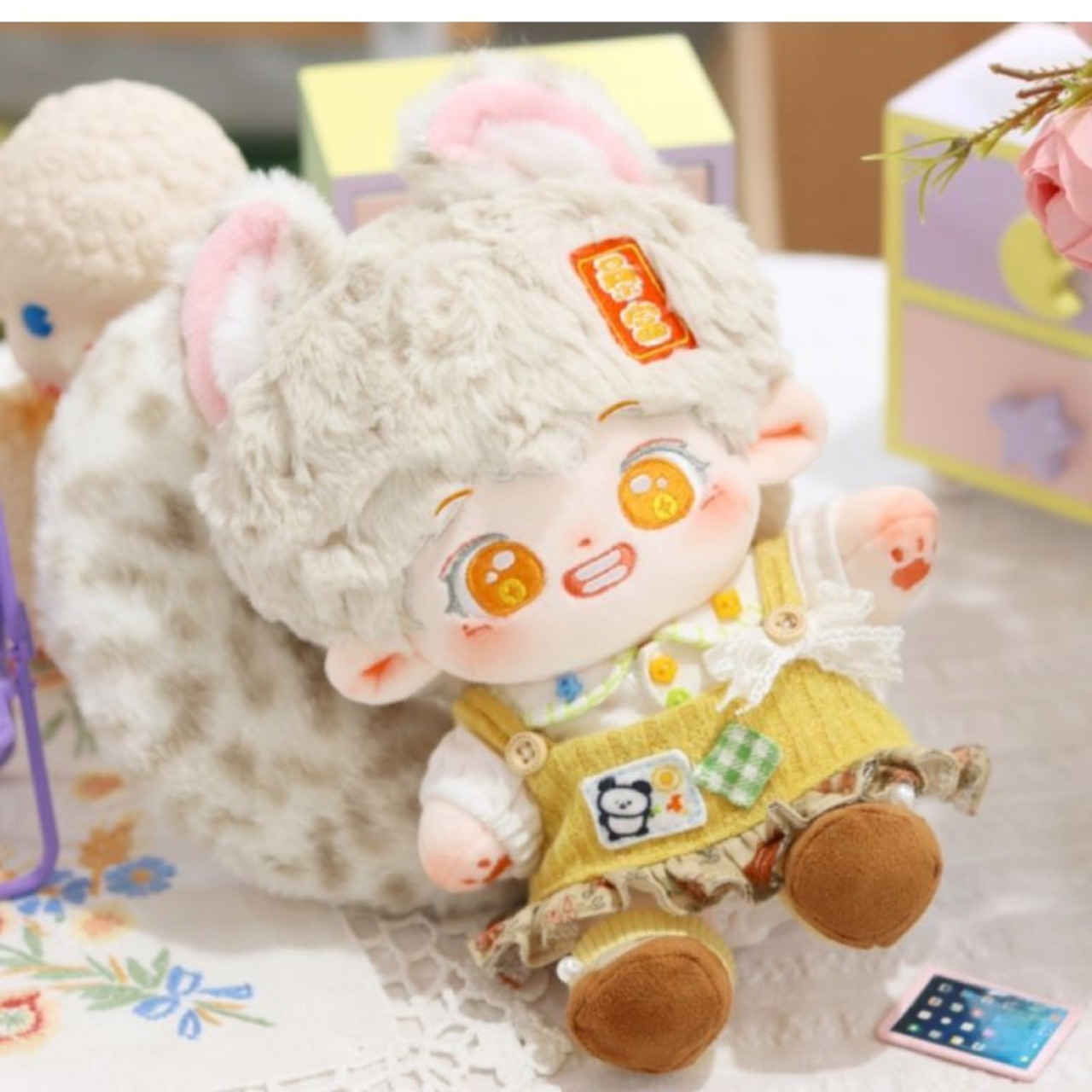 無属性 ぬいぐるみ 20cm 着せ替えぬいぐるみ 灰色の髪のオレンジ色の目獣耳付け男の子