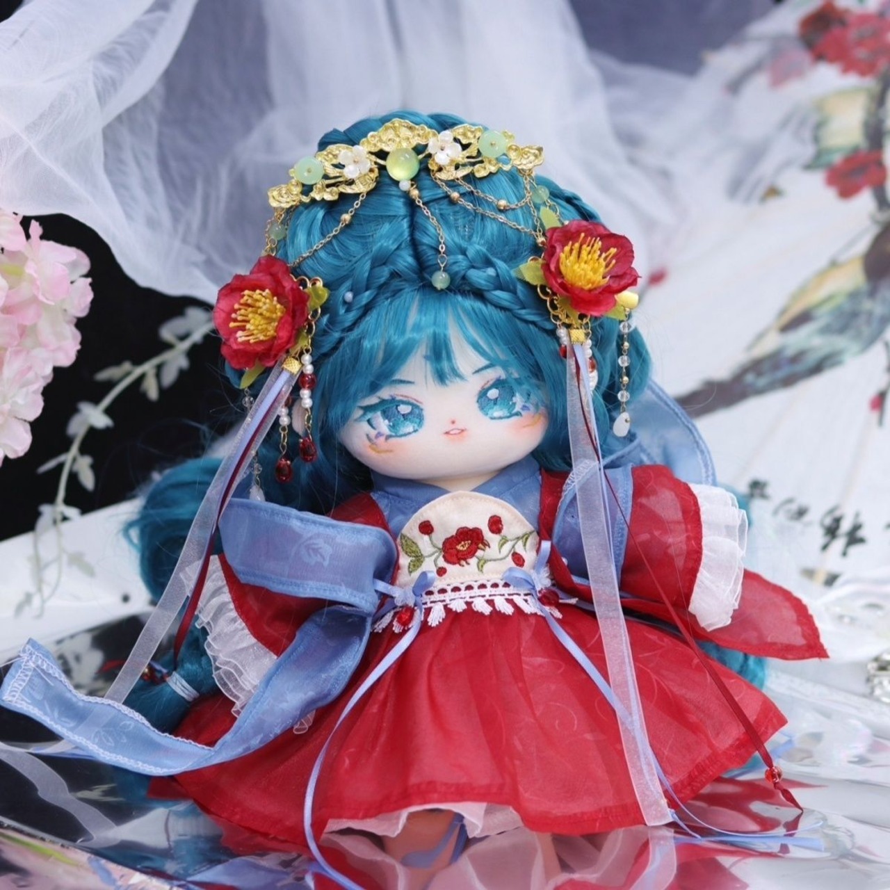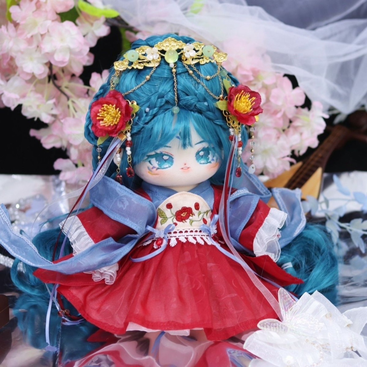 ロングヘア女の子 20cm 着せ替えぬいぐるみ 無属性 緑の髪緑の瞳 孔雀