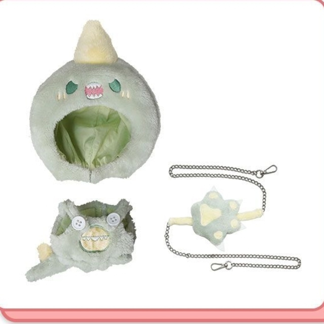 3点セット 10cm 着せ替えぬいぐる服 ぬいぐるみ用ショルダーバッグコスチューム 洋服 アクセサリー 小恐竜帽子ジャンプスーツ