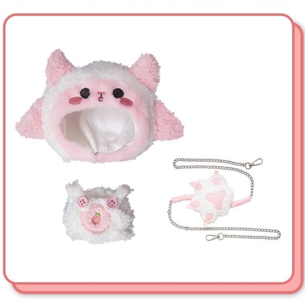 3点セット 10cm 着せ替えぬいぐる服 ぬいぐるみ用ショルダーバッグ 着せ替え人形洋服 アクセサリー 小綿羊オーバーオール帽子