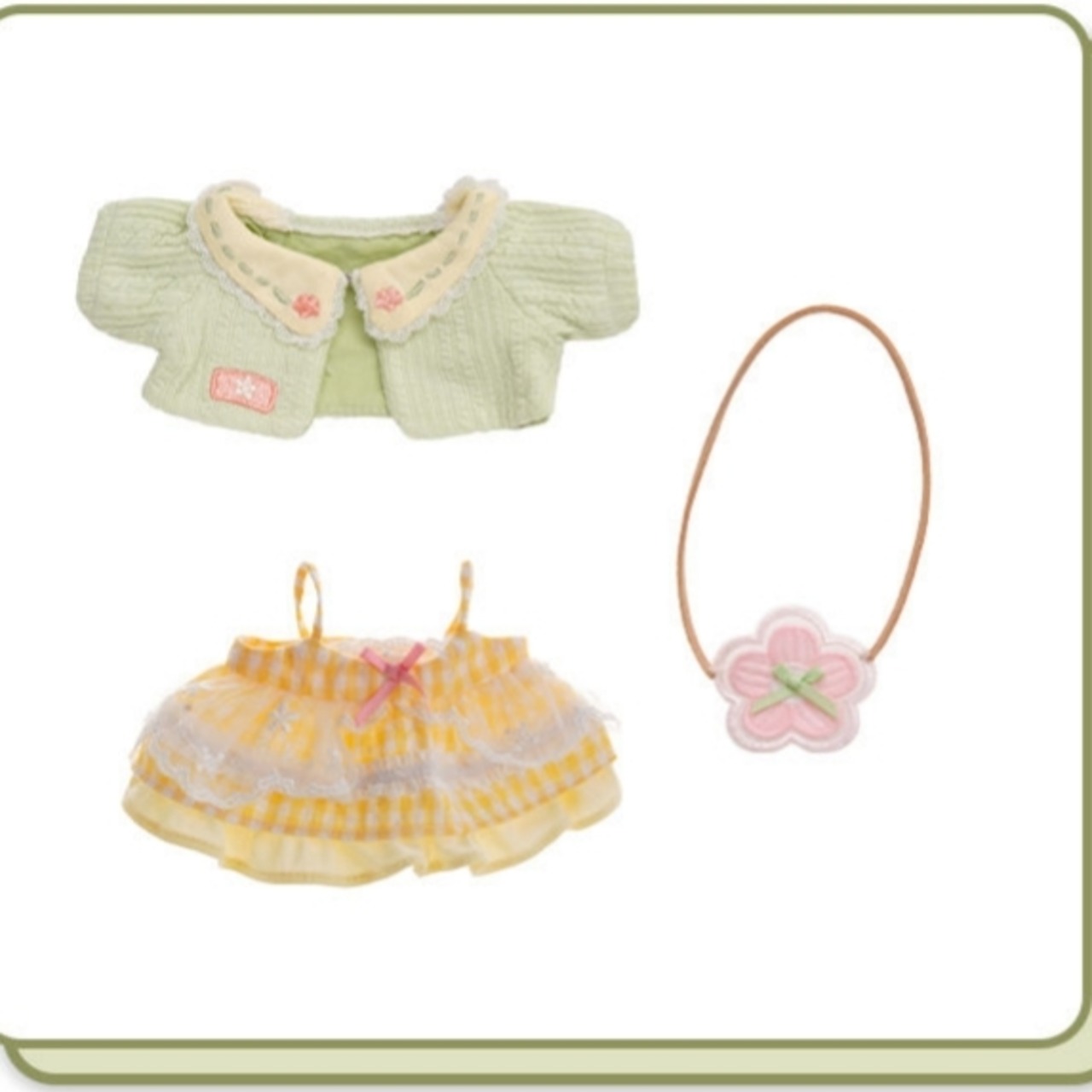 3点セット 20cm 着せ替えぬいぐる服 ぬいぐるみ用服コスチューム グリーンコート スカート 春の野遊び