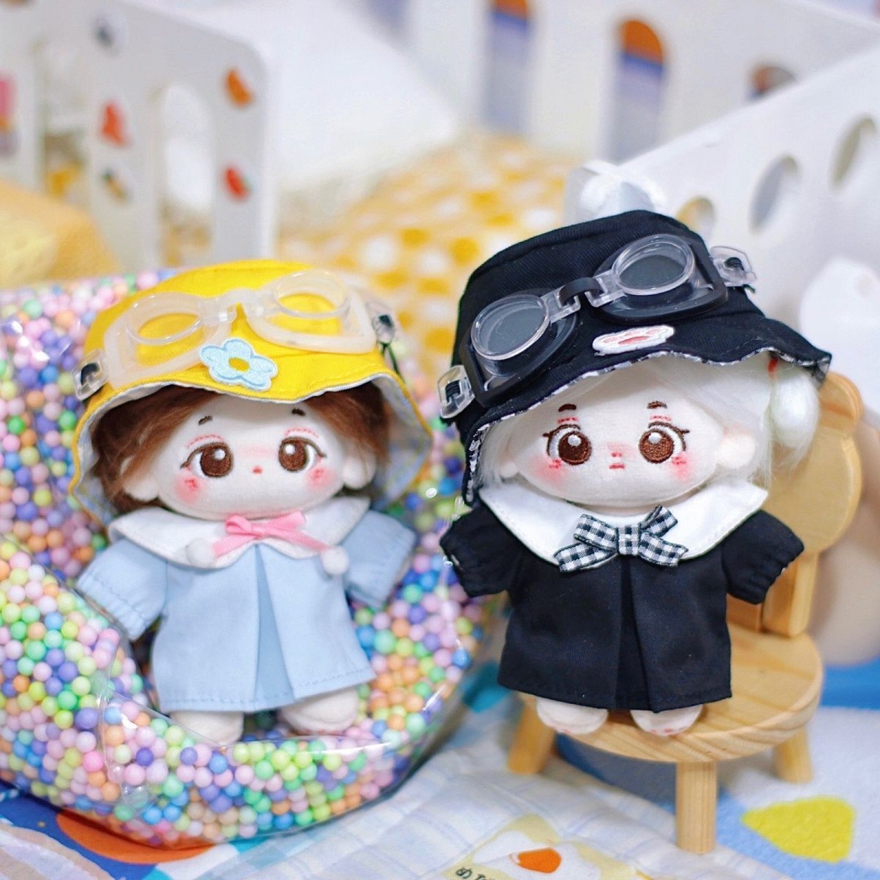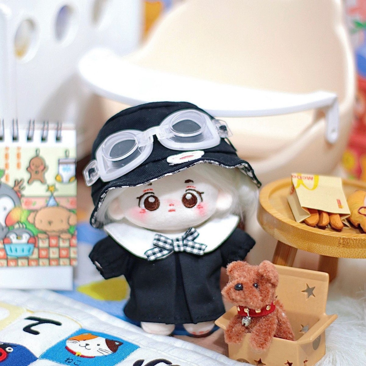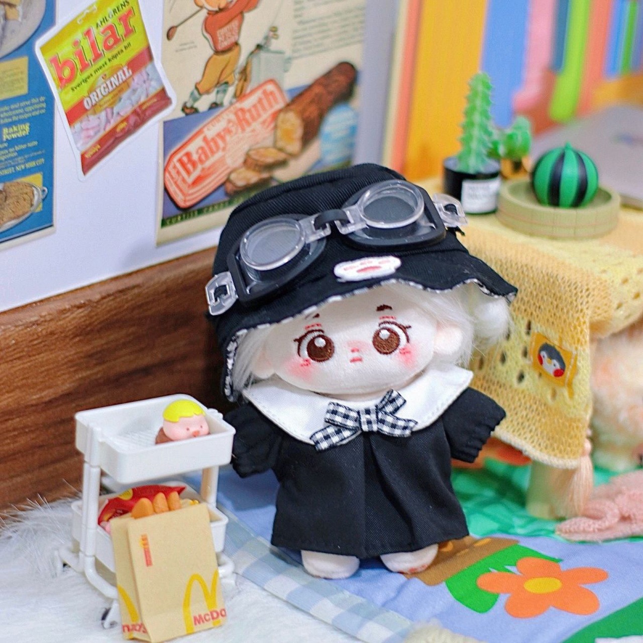 3点セット 10cm 着せ替えぬいぐるみ用服 コスチューム 眼鏡 帽子 ワンピース
