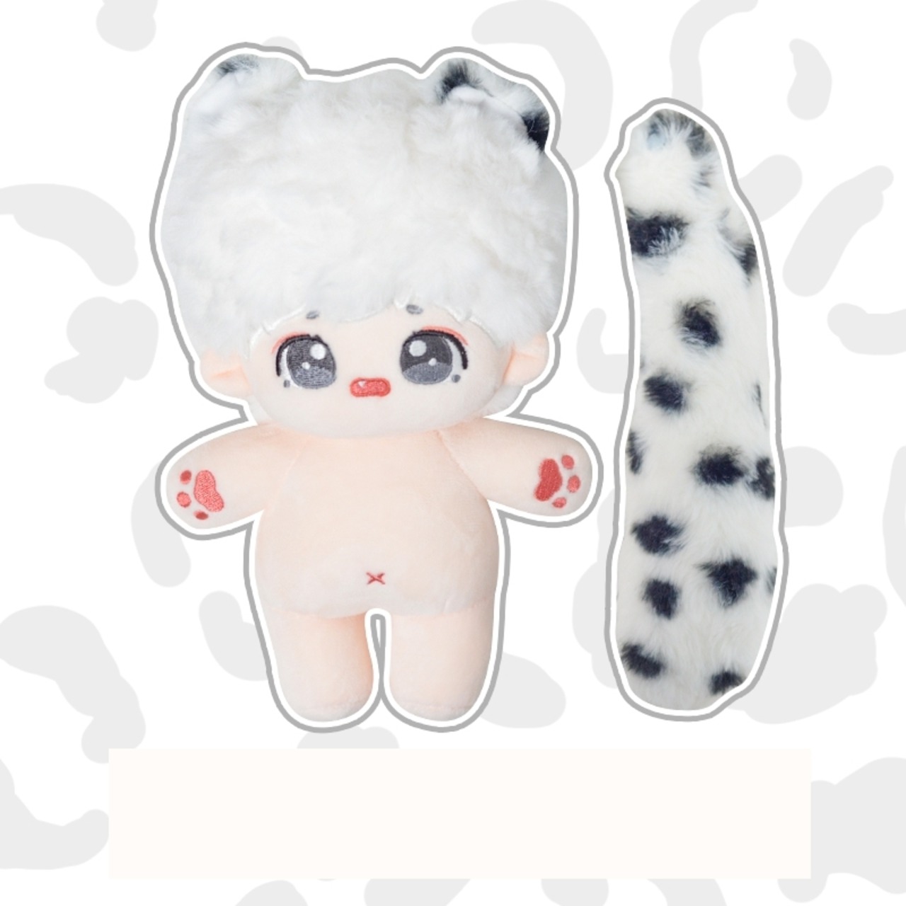 無属性 ぬいぐるみ 20cm 着せ替えぬいぐるみ 獣耳付け男の子 小雪豹 白い髪と黒い目