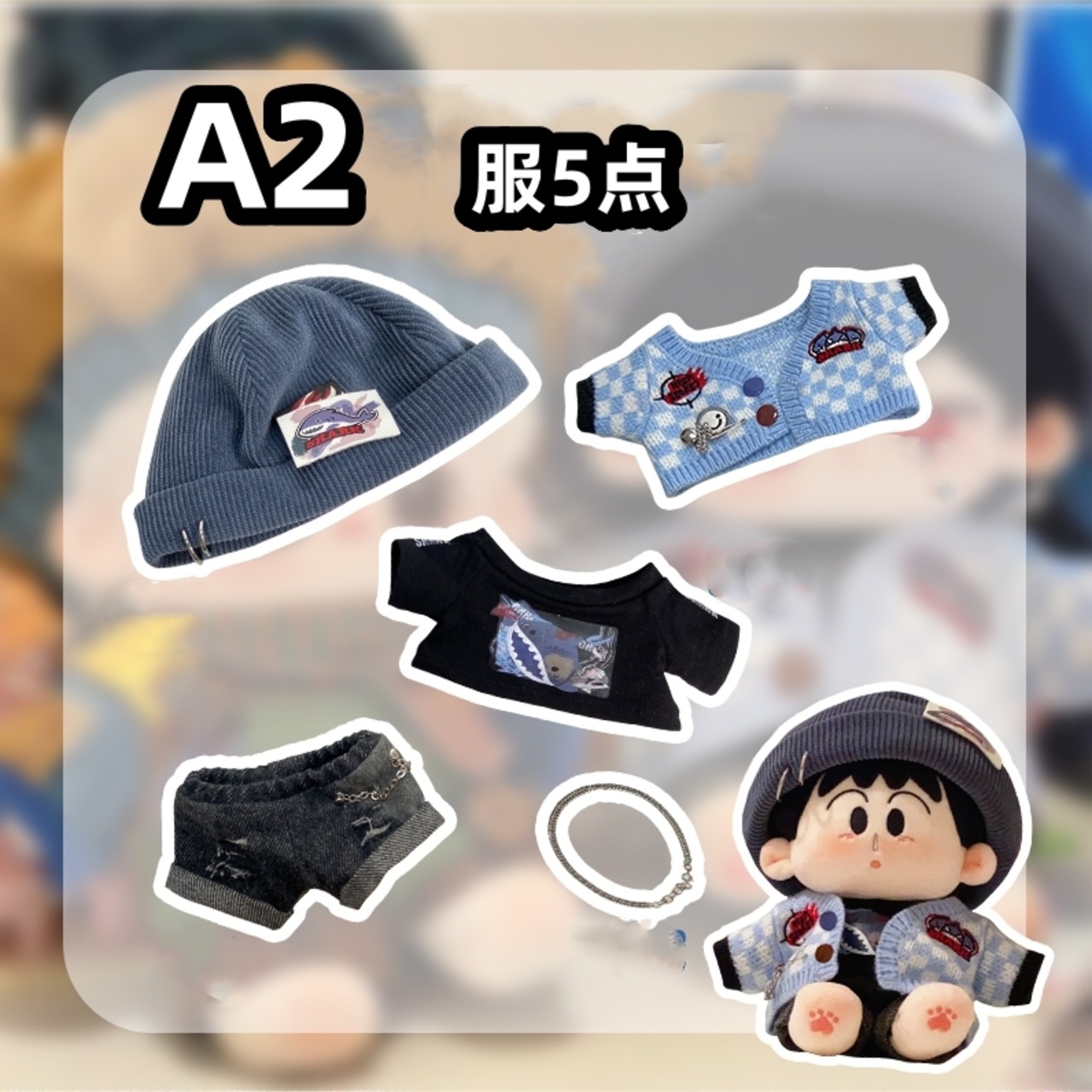 5点セット ミニ洋服 20cm 着せ替えぬいぐる服 帽子 Tシャツ ショートパンツ ジャケット ネックレス