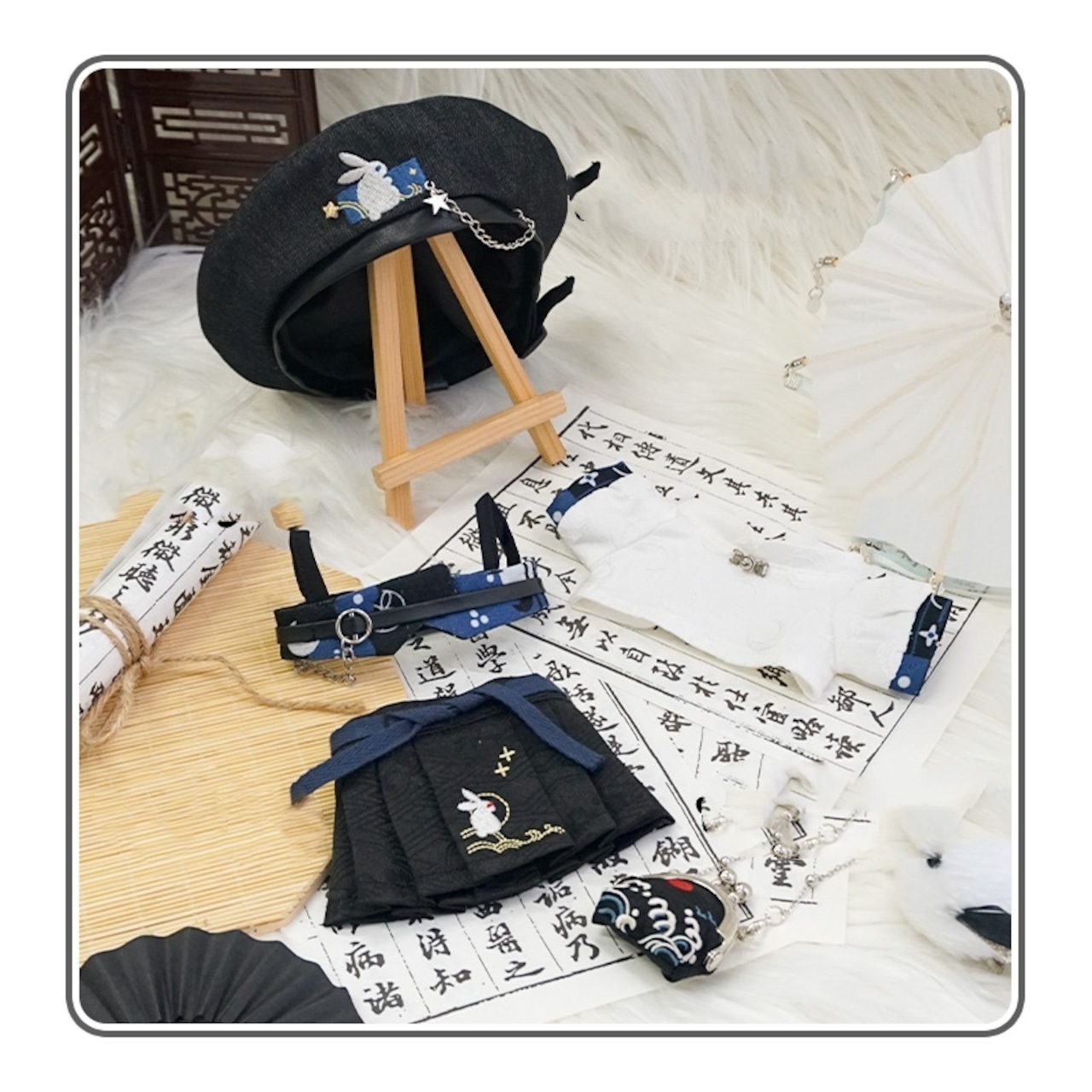 4点セット ミニ洋服 20cm 着せ替えぬいぐる服 中国風馬顔スカート 帽子 ジャケット