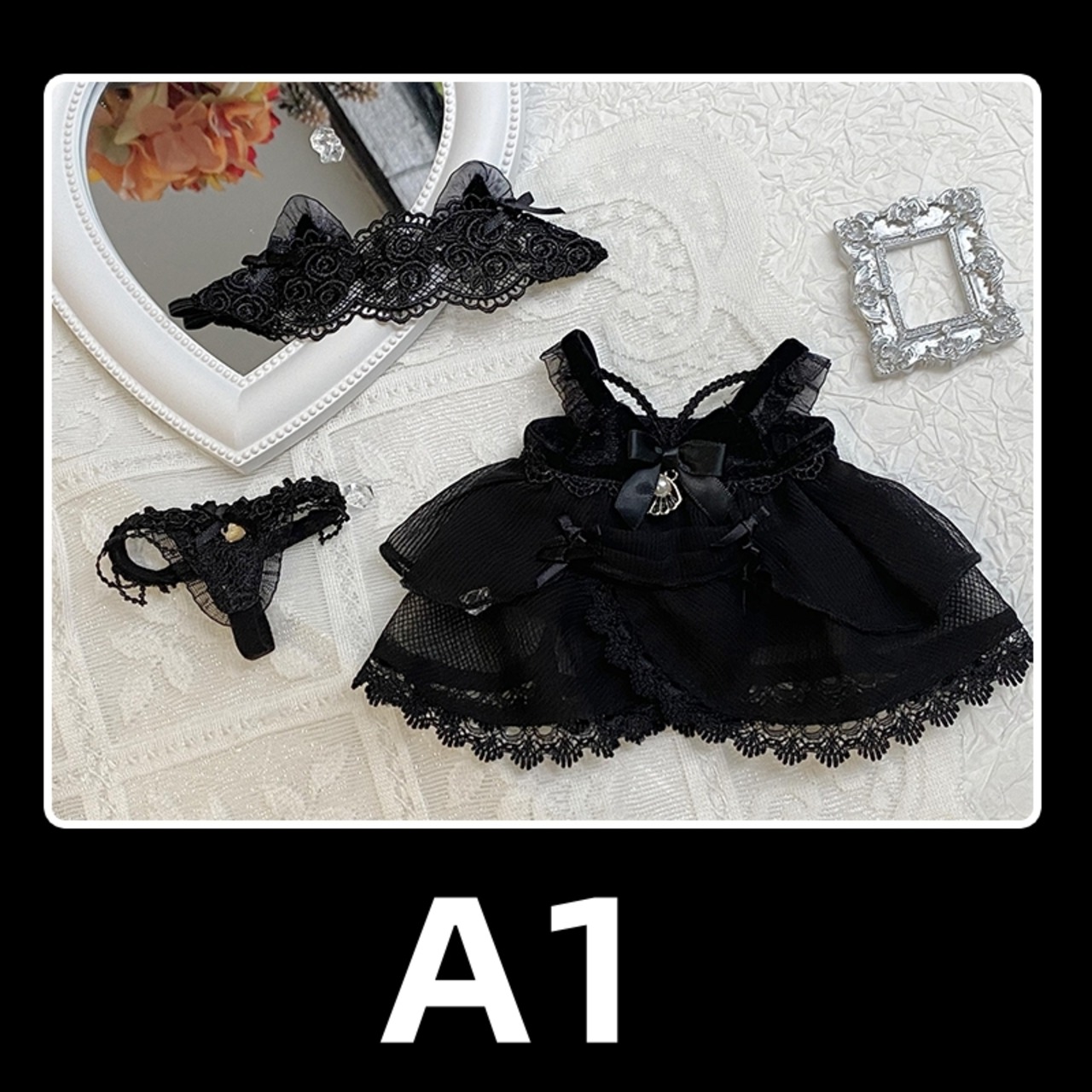 3点セット ミニ洋服 20cm 着せ替えぬいぐる服 黒 白 ビクトリアネグリジェ ナイトガウン