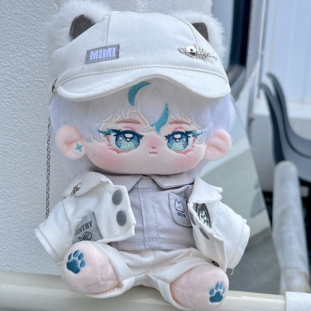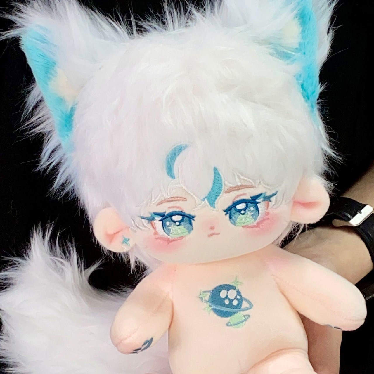 無属性 ぬいぐるみ 20cm 着せ替えぬいぐるみ 獣耳尾付け男の子 白い髪青い目 景澈