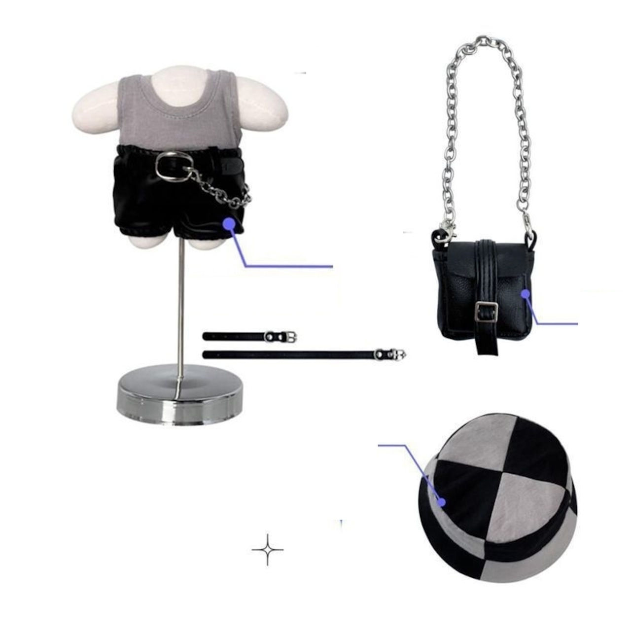 6点セット ミニ洋服 20cm 着せ替えぬいぐる服 ぬいぐるみ用服コスチューム スイートクールスタイル