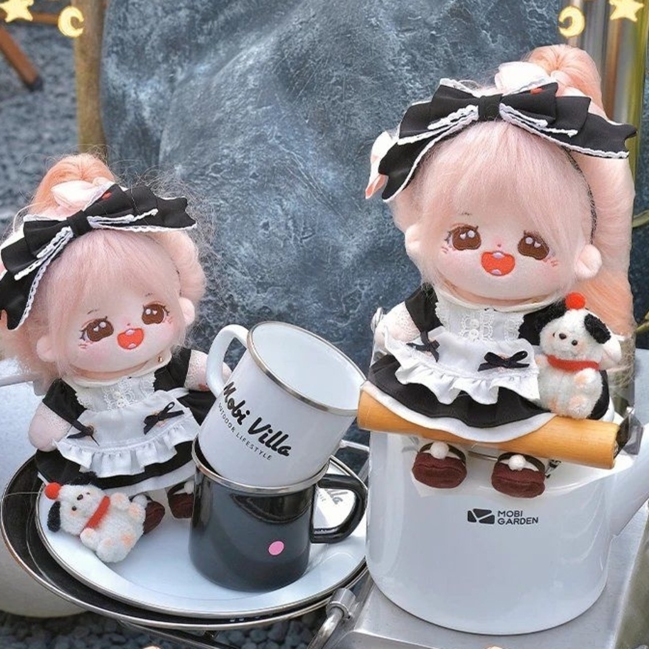 6点セット 20cm 着せ替えぬいぐる服 ぬいぐるみ用服コスチューム メイドドレス 靴 エプロン 弓の頭飾り ちょうネクタイ
